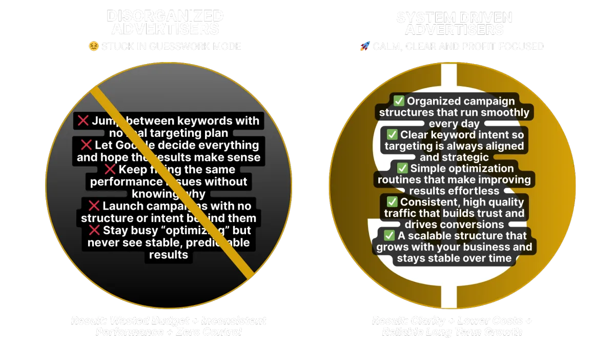 This is why most advertisers stay overwhelmed and underperforming, while a smaller group quietly scales with precision by using clear, intentional systems that keep their campaigns consistent and effective.